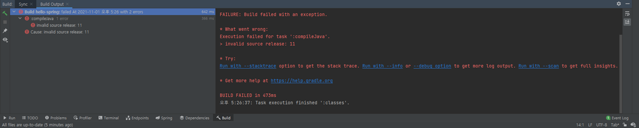 - 프로젝트와 IntelliJ에 설정된 자바 버전 차이