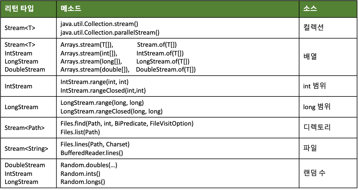 - Stream은 객체 요소를 처리하는 스트림이고, IntStream, LongStream, DoubleStream은 각각 기본 타입인 int, long, double 요소를 처리하는 스트림입니다.