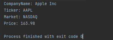 at [Source: (String)"{"companyName":"Apple Inc","ticker":"AAPL","market":"NASDAQ","price":163.98}"; line: 1, column: 2]