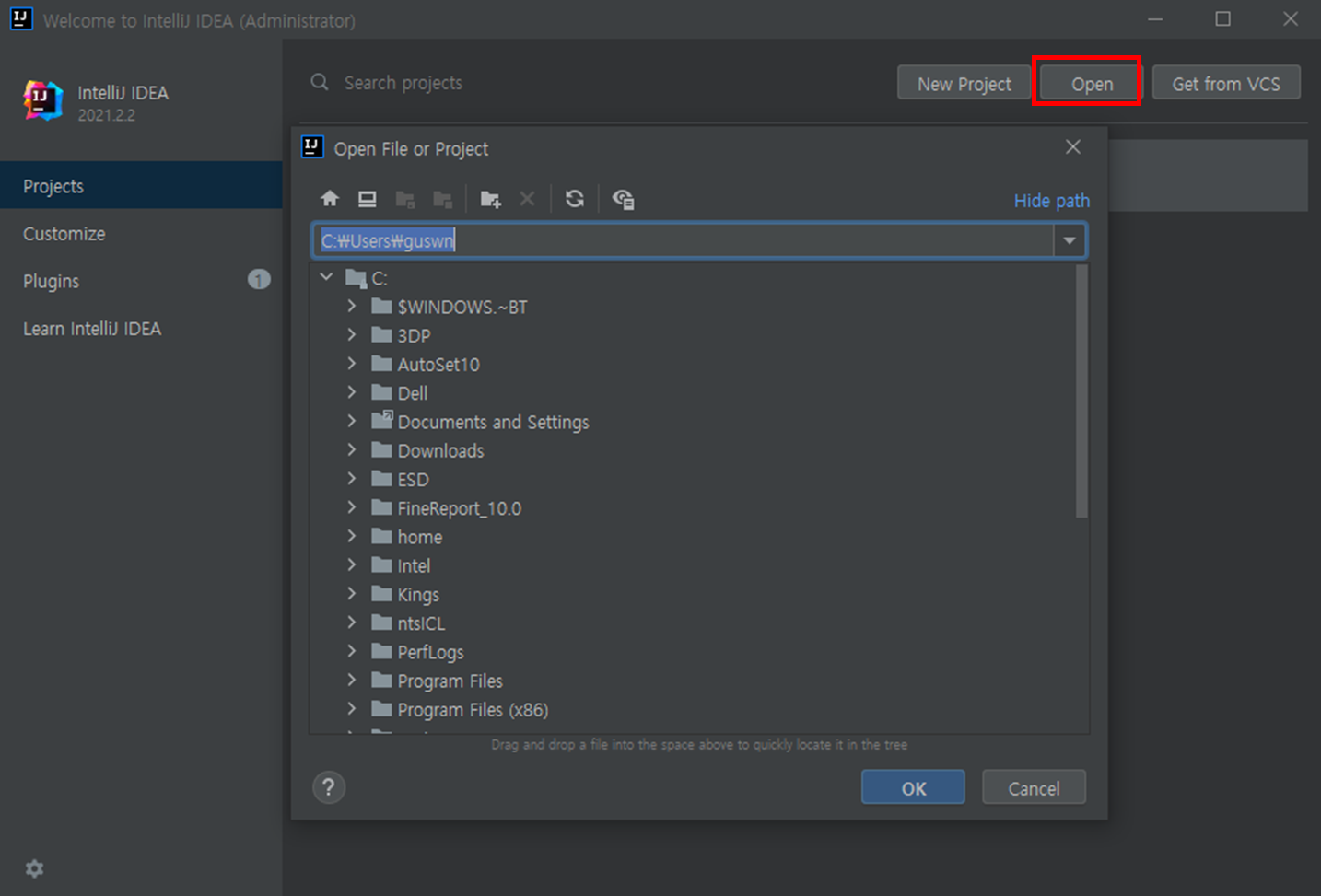 2. 그 후 압축을 풀어 인텔리제이 프로젝트로 열어줍니다.