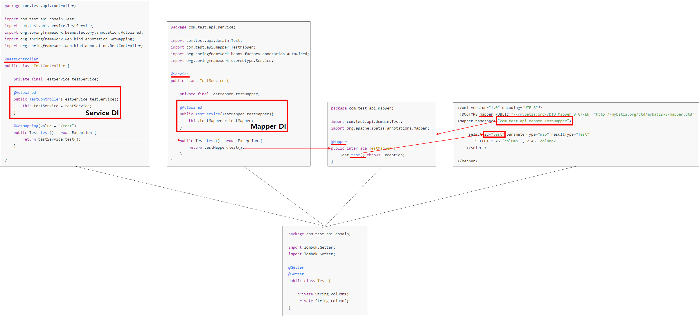 - 메소드 명은 Mapper xml 파일의 id와 맞춰줘야 합니다.