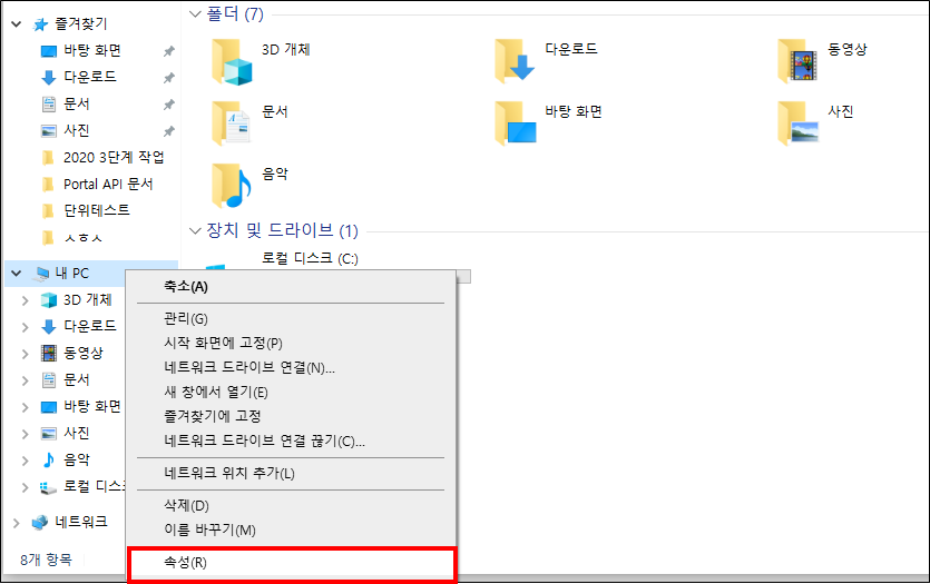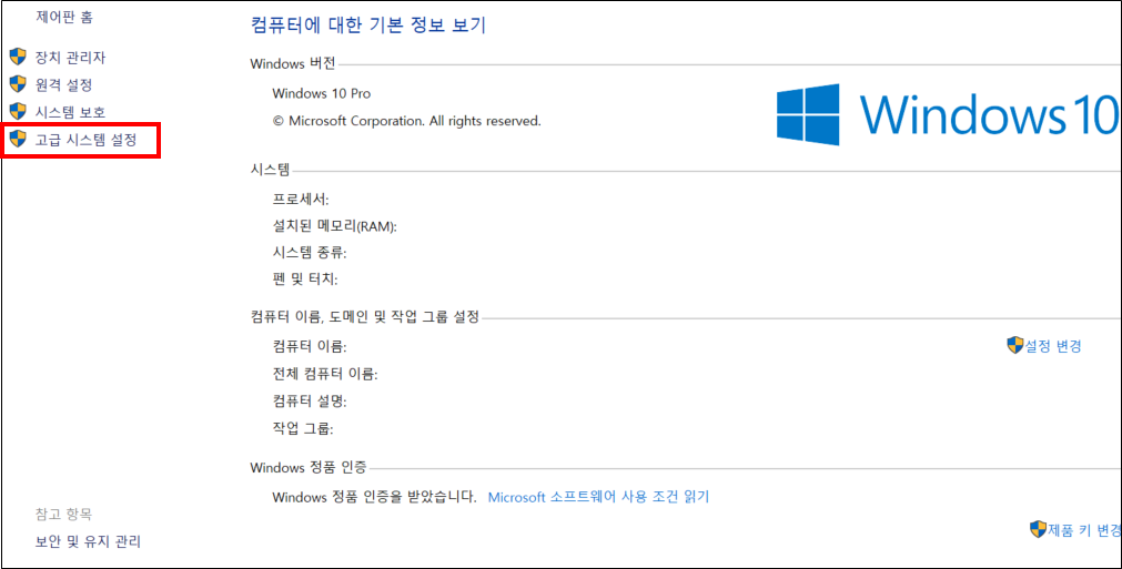 - 검색이 안 되는 경우엔 내 PC 오른쪽 마우스 클릭 후 속성을 연 후에 고급 시스템 설정을 열어 줍니다.